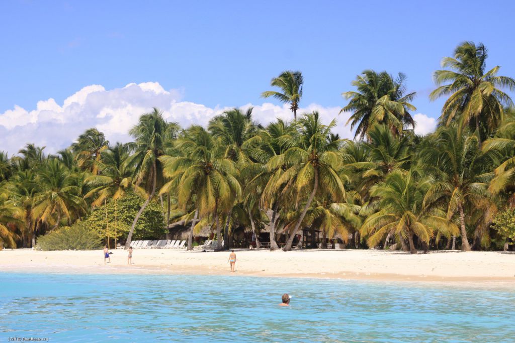 Od fotky č. 42 vidíte život místních lidí, který není jistě lehký. Projíždíme městem Hiquey s 300 000 obyvateli s velkým betonovým kostelem, jenž byl darován francouzskou vládou. Míříme na ostrov Saona, národní rezervaci ještě s překrásnějším mořem a plážemi než v oblasti Punta Cana. Moře má opravdu tak nádhernou barvu. Dokonce u tohoto ostrova je místo na širém moři, kde máte jen vodu po pás, nazýváno místními 'Bazén karibiku'.