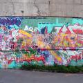 Roky konzervovaná, kdysi tolerovaná, stěna v pražských Holešovicích. Ulice U papírny, Železničářů a okolí.