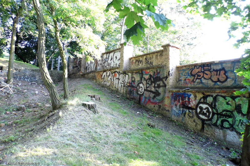 Aktuální stav legální stěny v horní části parku Parukářka + zašitá stěna čekající na pokryv.