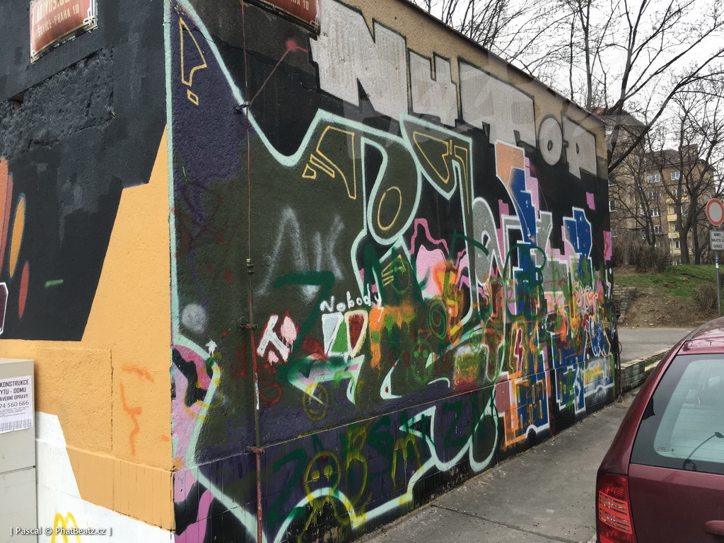 Procházka lokacemi Prahy 10 dle seznamu níže. Zeď před mateřskou školkou v ul. Vršovická, stěny u hřiště školy v ul. Přípotoční, dvě stěny v ul. Vladivostocká (o víkendu většinou zamčeno), portál jídelny ZŠ u Roháčových kasáren a část haly na stolní tenis a bytovka v areálu TJ Lokomotiva na straně k Lopuchové ulici.